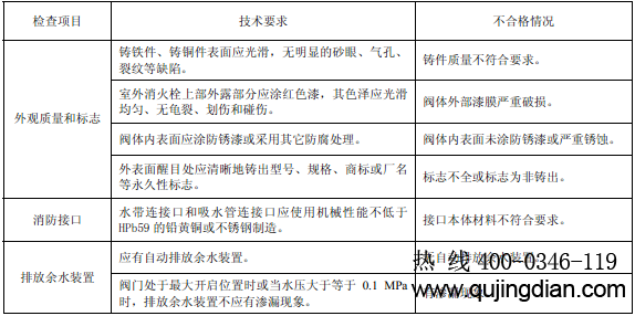 目測和手動檢查室外消火栓外觀質(zhì)量和標志、消防接口的本體材料以及排放余水裝置。